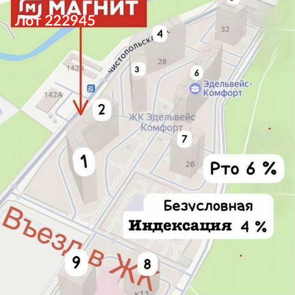 Лот № 222945 Продажа готового бизнеса с федеральным арендатором. Магнит в ГАБе. ДДУ до 2034 г. Ключевые показатели: Арендатор: «Магнит» (федеральная сеть, кредитоспособный арендатор). Площадь помещения: уточните, пожалуйста, для точности. Гарантированный доход (МАП): 1 412 000 руб./год. Договор аренды (ДДА): до 2034 года (около 10 лет). Индексация арендной платы: 4% годовых. РТО (оборот арендатора): 6% от товарооборота. Описание: Продается инвестиционно привлекательное нежилое помещение с действующим договором аренды (ДДА) с сетью «Магнит». Объект идеально подходит для пассивных инвестиций с гарантированным и растущим доходом. Преимущества для покупателя: Стабильный доход: Гарантированный ежегодный платеж (МАП) составляет 1 412 000 рублей. Это надежный денежный поток на долгие годы. Долгосрочный контракт: Действующий договор аренды заключен до 2034 года, что обеспечивает стабильность и прогнозируемость инвестиций. Рост дохода: Ежегодная индексация арендной платы на 4% защищает ваш доход от инфляции и увеличивает его в абсолютном выражении с каждым годом. Дополнительный доход: Помимо гарантированного МАПа, вы получаете 6% от товарооборота (РТО) арендатора, что дает потенциал для увеличения доходности при успешной работе магазина. Надежный арендатор: «Магнит» — одна из крупнейших розничных сетей России с безупречной репутацией и высокой платежной дисциплиной. Риски невыплат арендных платежей сведены к минимуму.